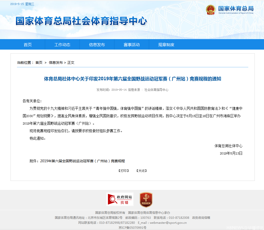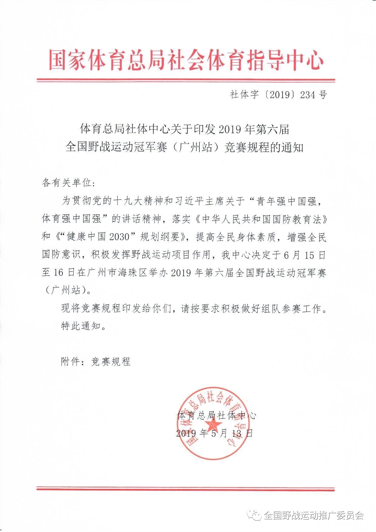 第六届全国野战运动冠军赛(广州站)定于6月15日在海珠区举办